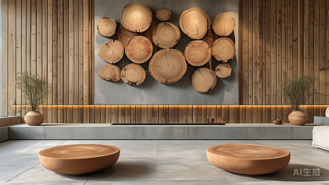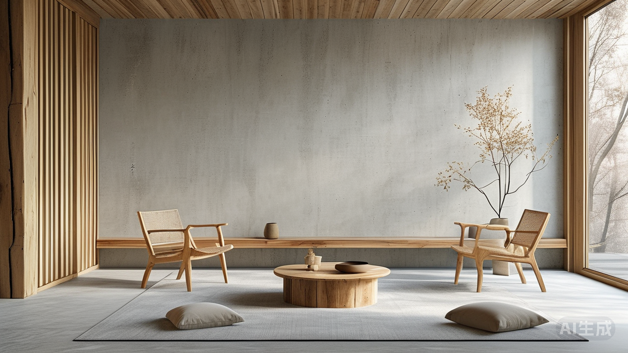 瓷砖装饰新风向:微水泥×木纹混搭,打造“侘寂+自然”融合空间当现代审美逐渐回归本真,一种名为“侘寂+自然”的设计哲学正悄然兴起,而瓷砖装饰领域也迎来了全新的风向标——微水泥与木纹的巧妙混搭。这一组合打破传统材料的界限,以独特的质感碰撞和色彩交融,为空间注入了前所未有的灵动与深邃,让家成为一个承载着岁月痕迹与自然韵味的艺术殿堂。 踏入这样的空间,映入眼帘的是大面积铺陈的微水泥地面与墙面。它摒弃了光洁如镜的传统做法,刻意保留下手工涂抹时留下的不规则纹理,如同被时间轻柔抚摸过的痕迹,散发着质朴而高级的美感。那细腻又略带颗粒感的表面,在光线的折射下呈现出丰富的层次变化,时而深邃静谧,时而明亮温暖,恰似大自然中的岩石肌理,诉说着大地的故事。这种低调却极具张力的美,正是侘寂美学的核心所在。