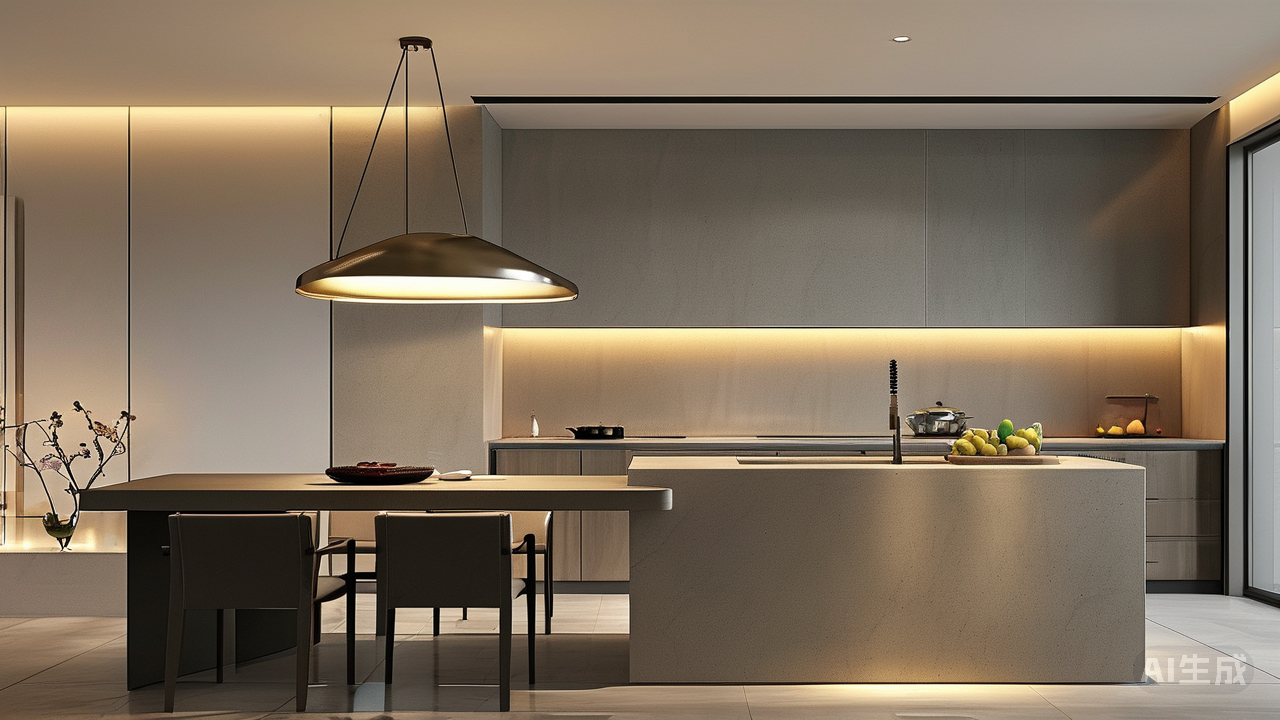 细节之处见真章。在岛台的边缘处理上,工匠们采用了精致的倒角工艺,既保证了使用的舒适度,又增添了几分精致感。同时,搭配上金属质感的五金配件和简约风格的灯具,整个空间在保持现代感的同时,也不失温馨与雅致。每当夜幕降临,灯光洒落在光洁的瓷砖表面,光影交错间,家的温馨与浪漫便在这方寸之间悄然绽放。